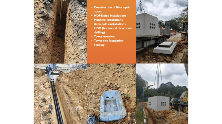 Our telecom civil engineering services include the design and construction of network infrastructure. From tower installation to site development, we deliver projects with a strong focus on safety, quality, and efficiency, ensuring your network infrastructure is built to last.